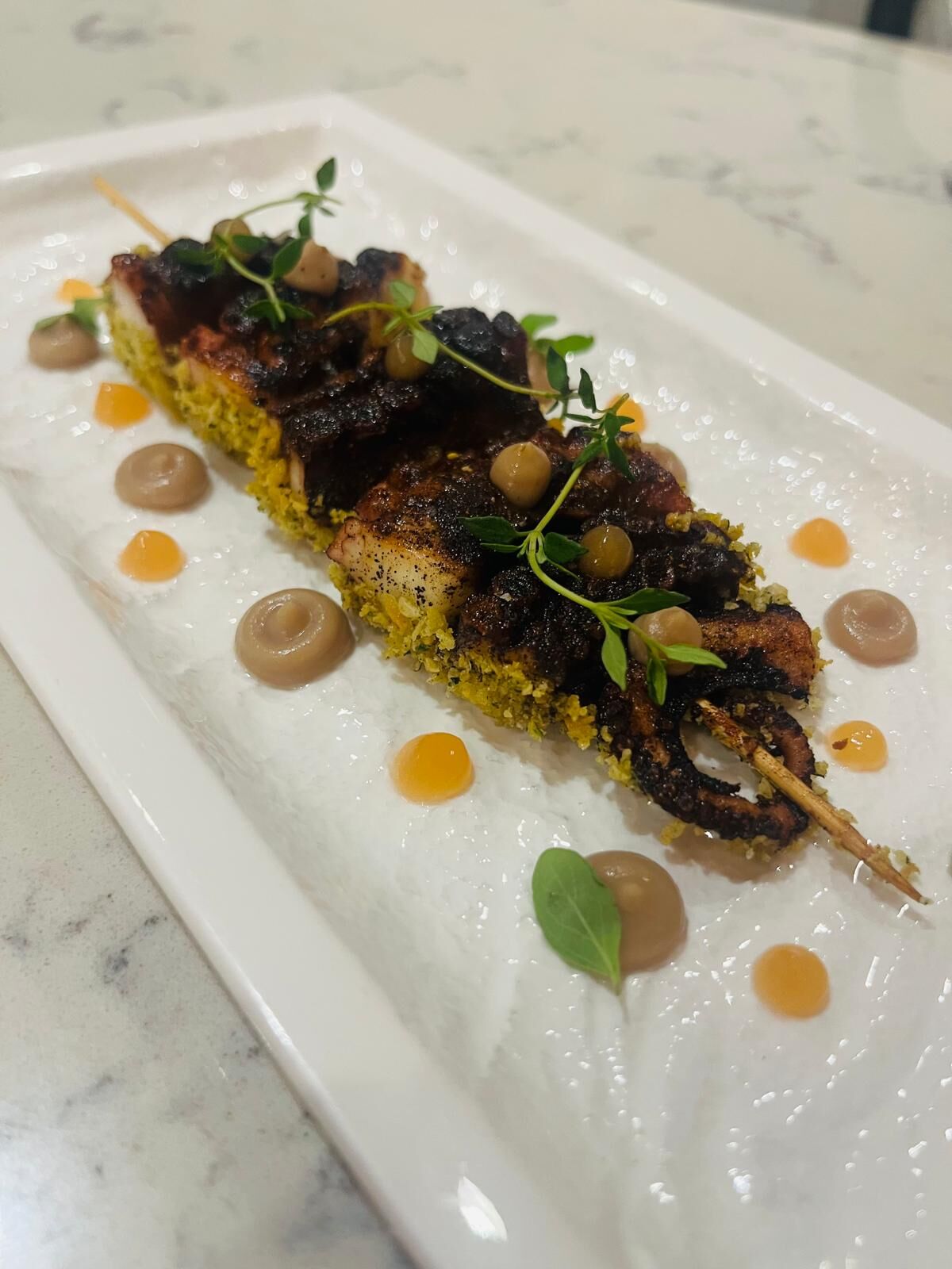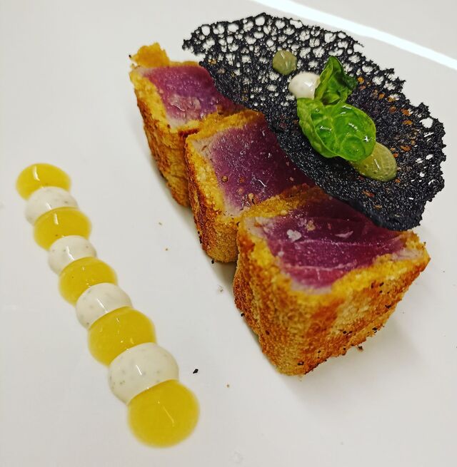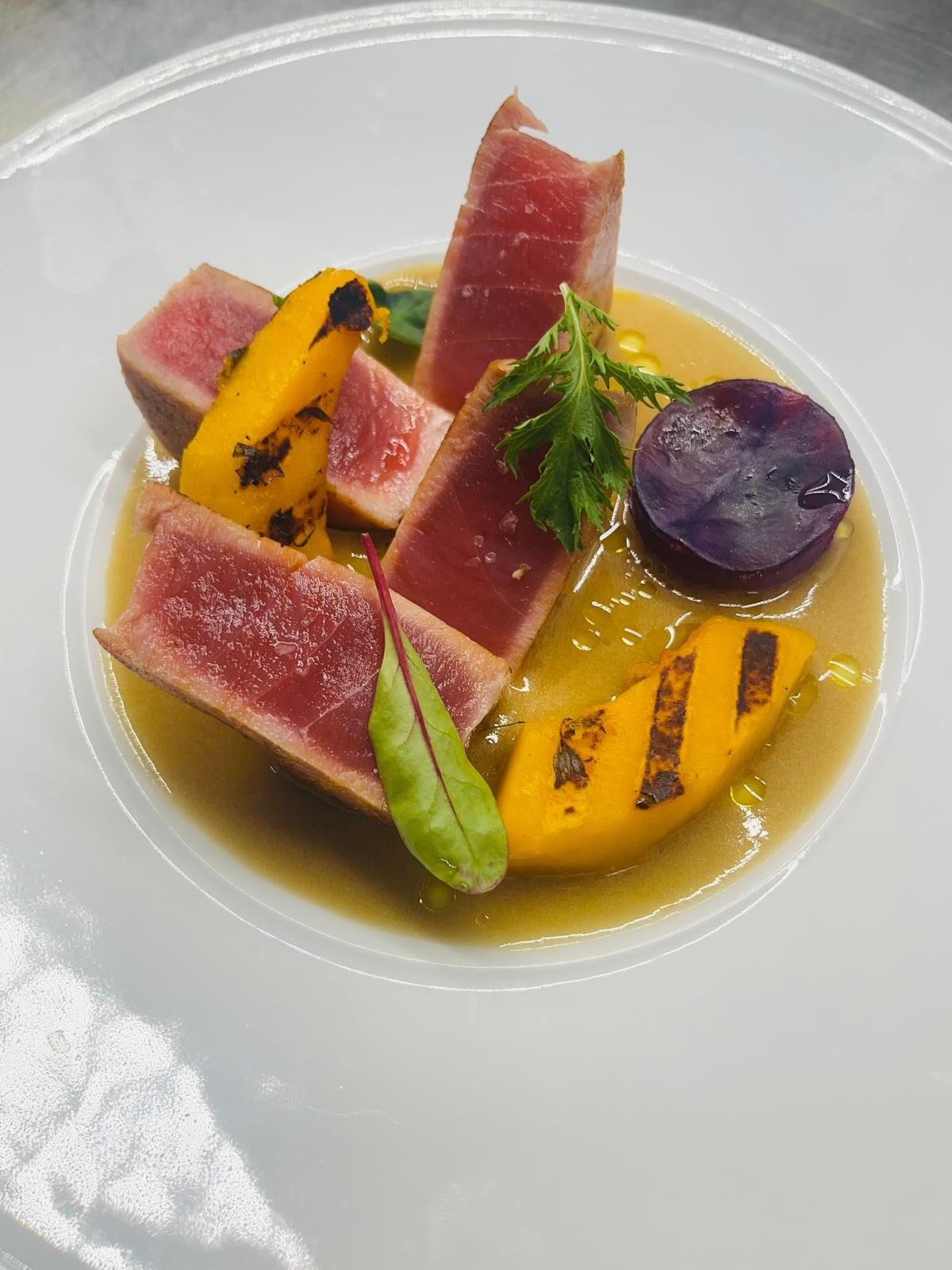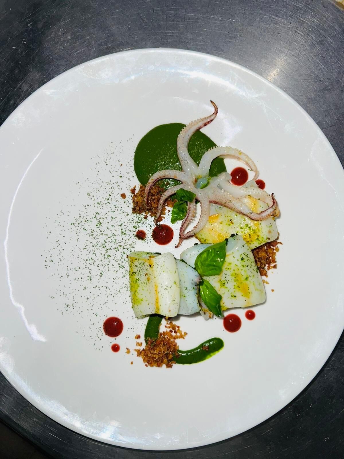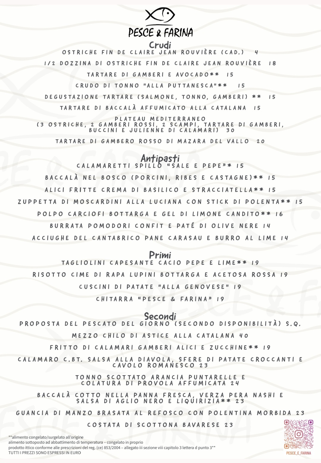 pesce , freschissimo, crudo o cucinato seguendo le ricette della tradizione italiana e la farina, ossia buonissime pizze, preparate con farine del sommo Molino Quaglia, in versione contemporanea.
